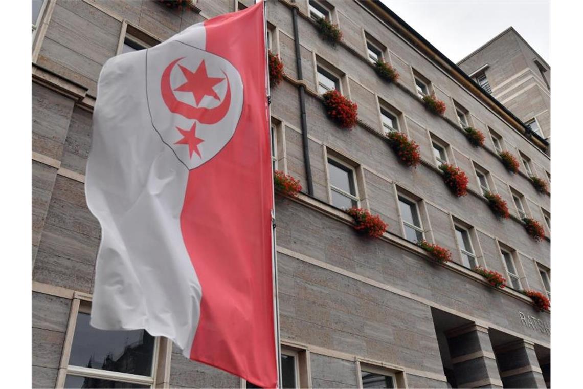 Flagge mit Stadtwappen von Halle. Im Fall der aus einem Fluss geretteten Sechsjährigen aus Halle haben Ermittler einen 24 Jahre alten Verdächtigen gestellt. (Symbolbild). Foto: Hendrik Schmidt/dpa-Zentralbild/ZB
