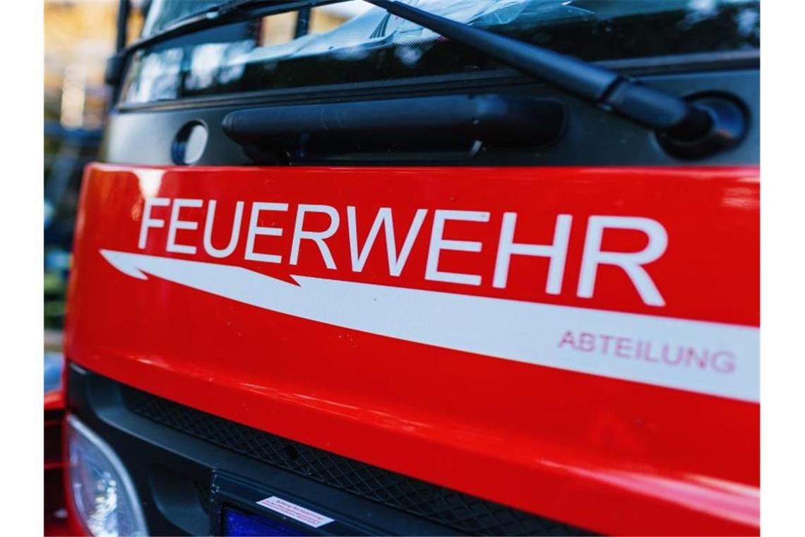 Feuerwehrleute stehen hinter einem Einsatzfahrzeug. Foto: Philipp von Ditfurth/dpa/Symbolbild