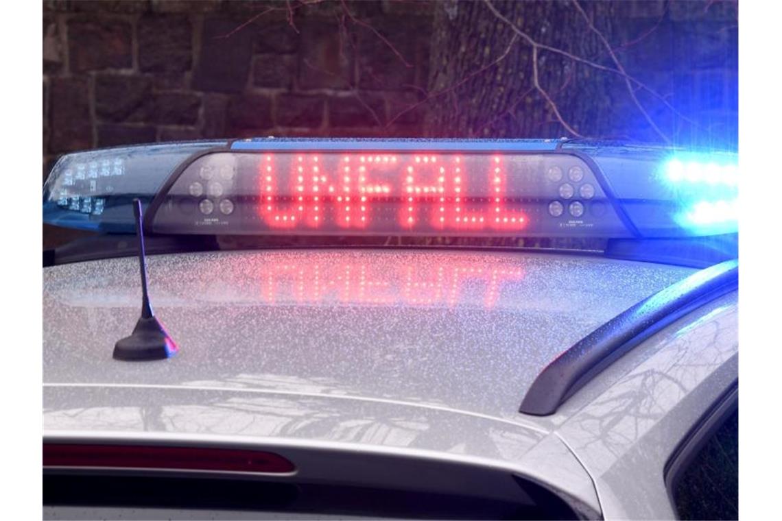 Ein Leuchtschild der Polizei weist auf einen Unfall hin. Foto: Carsten Rehder/dpa/Symbolbild
