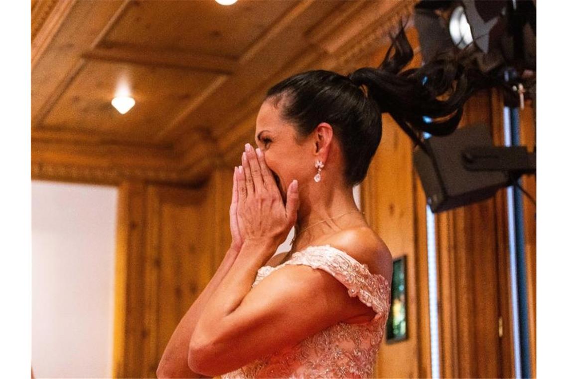 Marielena Aponte, Miss 50 plus 2021, freut sich über ihre Wahl. Foto: Philipp von Ditfurth/dpa