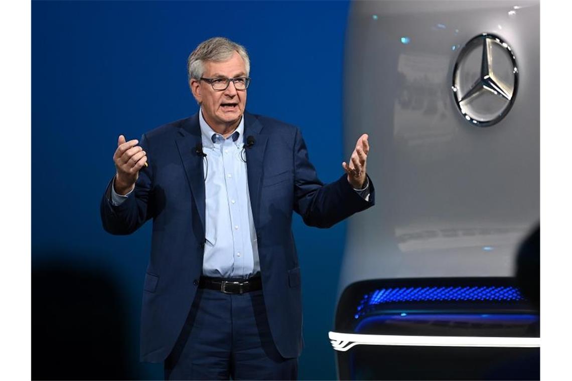 Martin Daum, Vorstandsvorsitzender Daimler Trucks & Buses, spricht. Foto: Britta Pedersen/dpa-Zentralbild/dpa