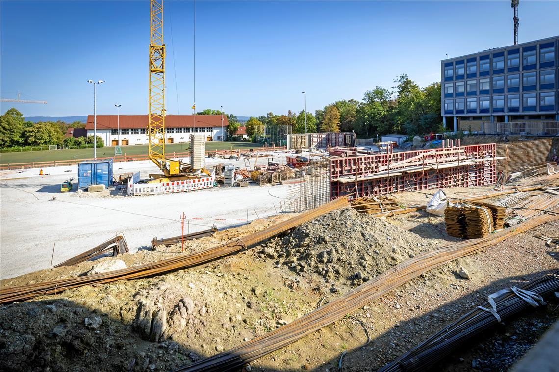 Die neue Sporthalle auf der Maubacher Höhe soll in einem Jahr fertig sein. Bis dahin braucht sie einen Namen. Die alte Halle, die Anfang des Jahres abgerissen wurde, war nach dem früheren Ersten Bürgermeister Karl Euerle benannt. Foto: Alexander Becher
