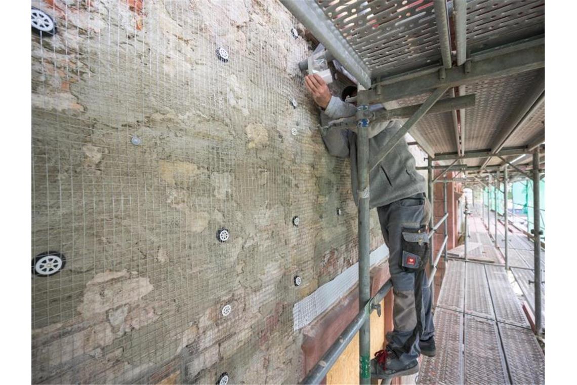 Ein Arbeiter ist mit der Sanierung eines Gebäudes beschäftigt. Viele langlebige Asbestprodukte wie Bodenbeläge oder Dachplatten sind noch immer in Häusern zu finden. Foto: Andreas Arnold/dpa