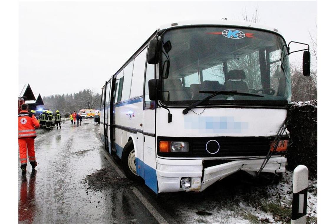 Der mit 42 Schülern im Grundschulalter besetzte Bus war bei Grassau im Landkreis Traunstein mit einem Auto zusammengestoßen.