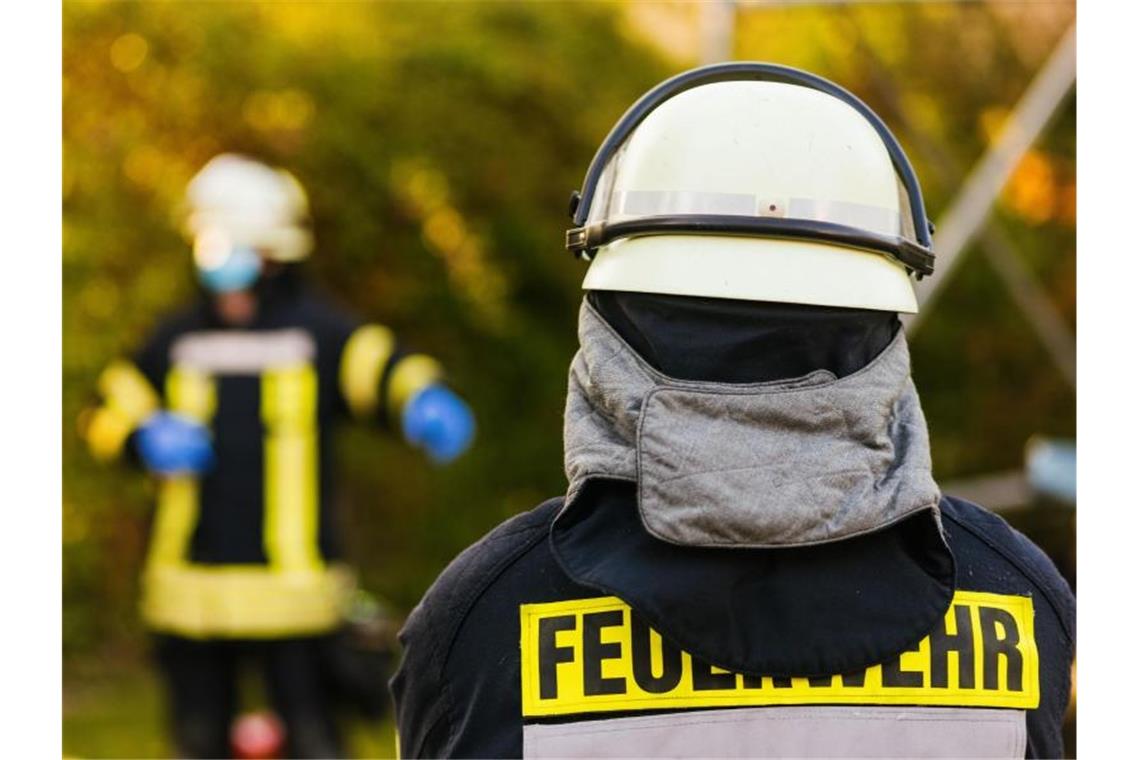 Einsatzkräfte der Feuerwehr in Schutzkleidung. Foto: Philipp von Ditfurth/dpa/Symbolbild
