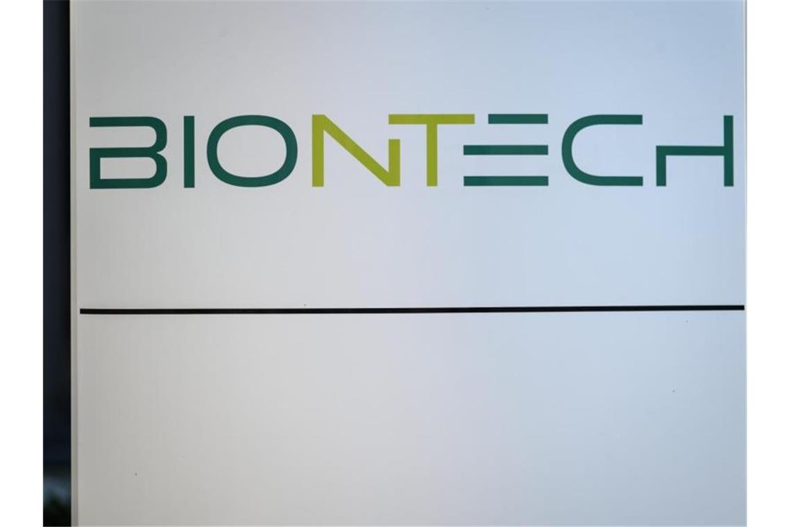 Das Logo des Biotechnologie-Unternehmens „BioNTech“. Foto: Andreas Arnold/dpa
