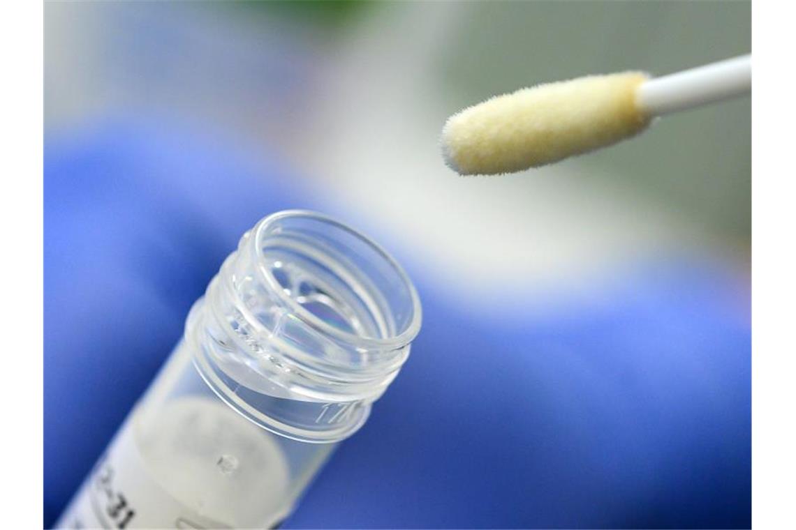 Ein Abstrich für das Testverfahren auf das Coronavirus. Foto: Sebastian Gollnow/dpa/Symbolbild
