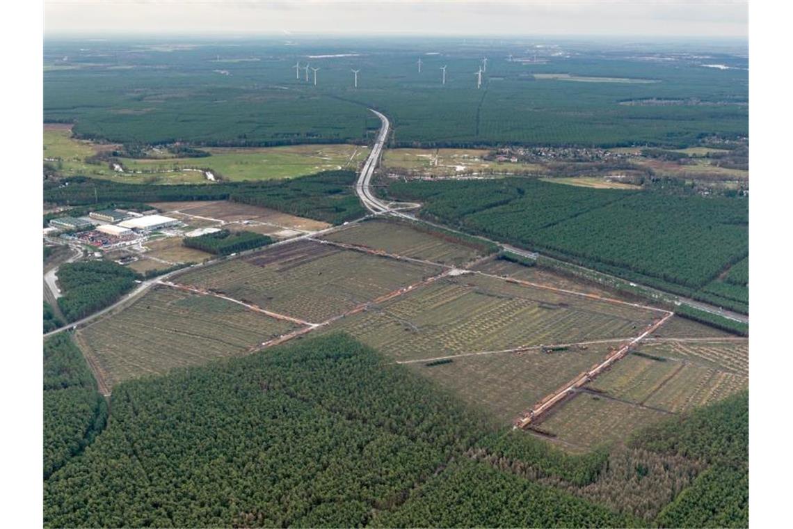 Blick auf das Gelände für die Tesla-Fabrik in Grünheide. Foto: Tino Schöning/dpa
