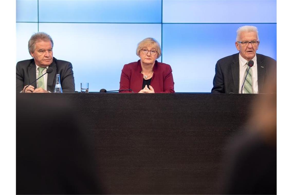 Winfried Kretschmann (alle Bündnis 90/Die Grünen, r-l), Theresia Bauer und Franz Untersteller. Foto: Sebastian Gollnow/dpa/Archivbild