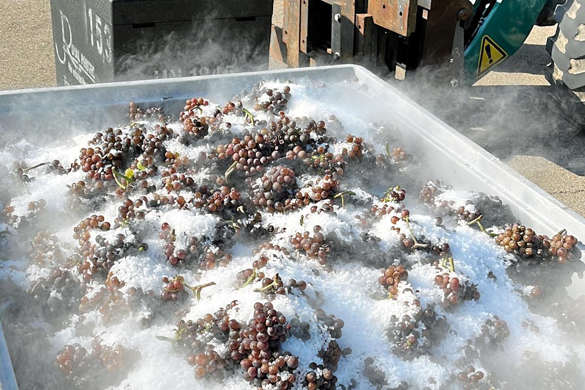 Schwieriger machten es auch die anhaltend warmen bis heißen Temperaturen. Darum wurde fast ausschließlich nachts gelesen. Bei der Handlese kam darum erstmals bei einigen Sorten Trockeneis zum Einsatz. So sollten die Trauben bis zur Weiterverarbeitung kühl gehalten und vor Oxidation geschützt werden. „Das soll noch mal für ein intensiveres Aroma sorgen und wir sind sehr gespannt auf das Ergebnis.“