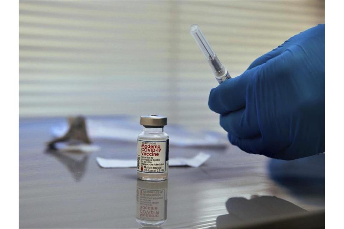Ein Krankenpfleger bereitet eine Dosis des Covid-19-Impfstoffs von Moderna in einem Krankenhaus in New York vor. Foto: Kevin Hagen/AP/dpa