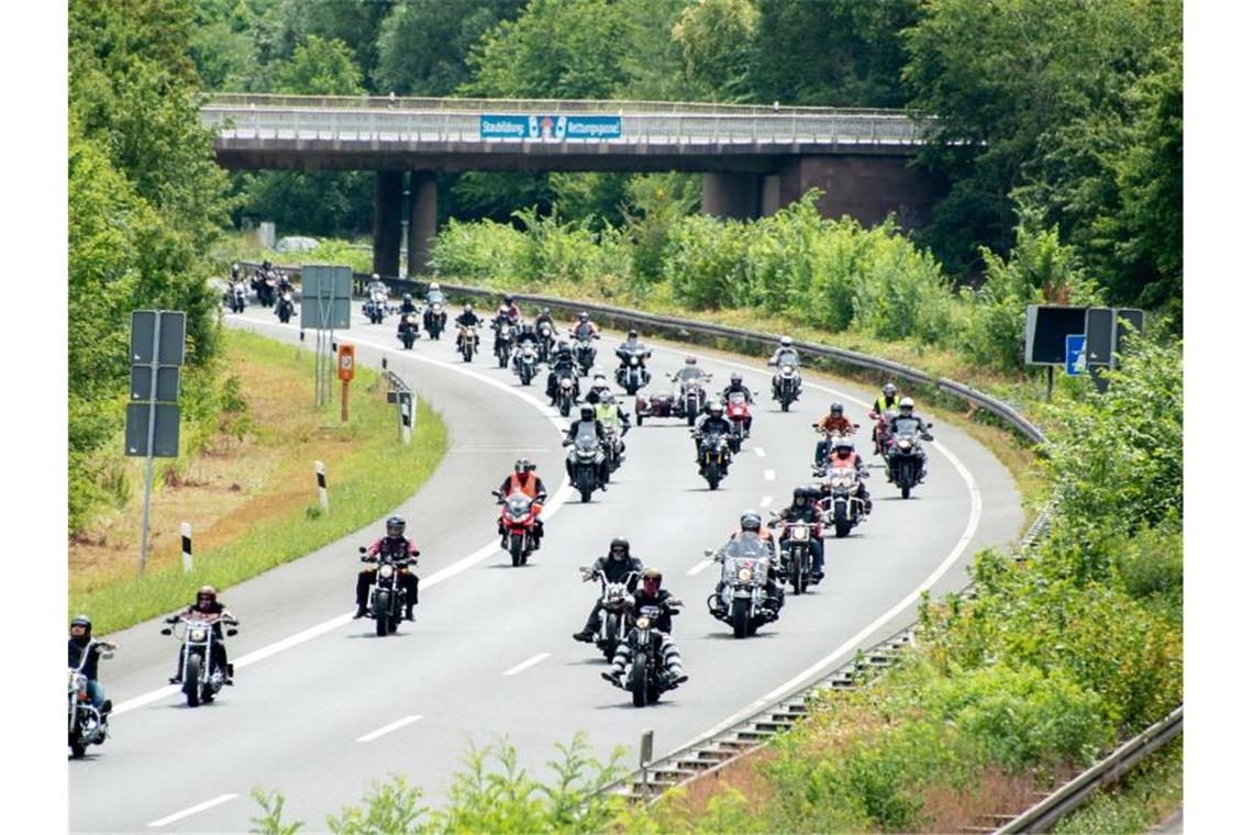 Motorradfahrer fahren während einer Demonstrationsfahrt auf der Autobahn. Foto: Hauke-Christian Dittrich/dpa/Archivbild