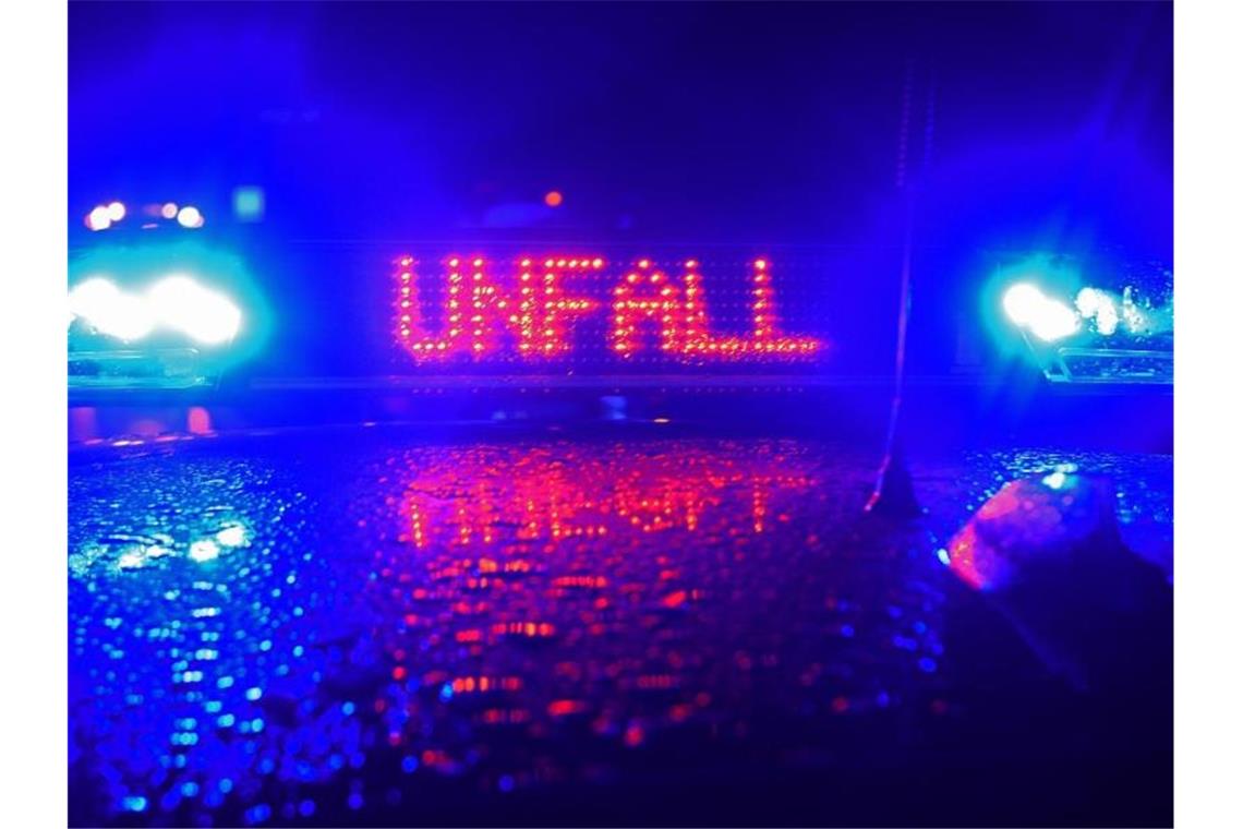 Während einer Unfallaufnahme spiegelt das Blaulicht und der Schriftzug "Unfall" auf dem Dach eines Polizestreifenwagens. Foto: Stefan Puchner/Archiv