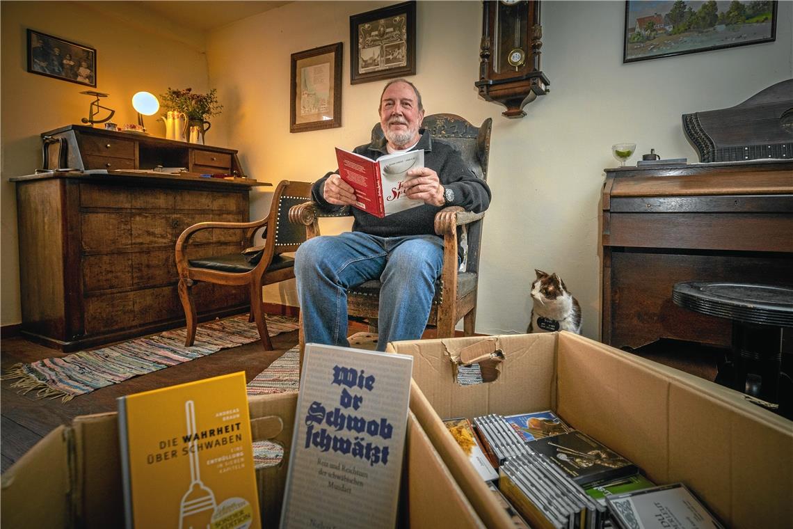 Weissach im Tal. Dass ein Autor oder Künstler seinen Nachlass noch zu Lebzeiten vermacht, das kommt nicht so häufig vor. Umso mehr schätzen die Mitglieder des Heimatvereins Weissacher Tal die Geste des schwäbischen Mundartautors Hanno Kluge, der nach einem Auftritt im Heimatmuseum in Unterweissach im März nicht nur dem Verein spontan beigetreten ist, sondern diesem nun auch noch seine vollständige Mundartsammlung übertragen hat. Zwei Umzugskisten voller Bücher, CDs und DVDs hat Kluge vor Kurzem im Auto von seinem Heimatort Böblingen-Dagersheim nach Unterweissach gefahren. Die Mitglieder des Heimatvereins Weissacher Tal haben nun vor, deren Inhalt zu sichten, zu archivieren und Interessierten so bald wie möglich auch zugänglich zu machen.