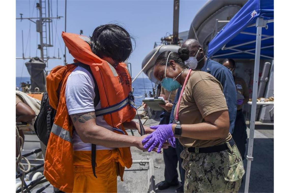 Seeleute des Lenkflugkörperzerstörers USS Bainbridge leisten Hilfe für die Besatzung der „Kokuka Courageous“. Foto: Specialist 3rd Class Jason Waite