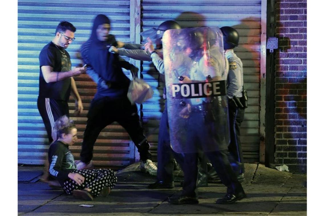Demonstranten geraten in Philadelphia mit Polizisten aneinander. Foto: Elizabeth Robertson/The Philadelphia Inquirer/AP/dpa