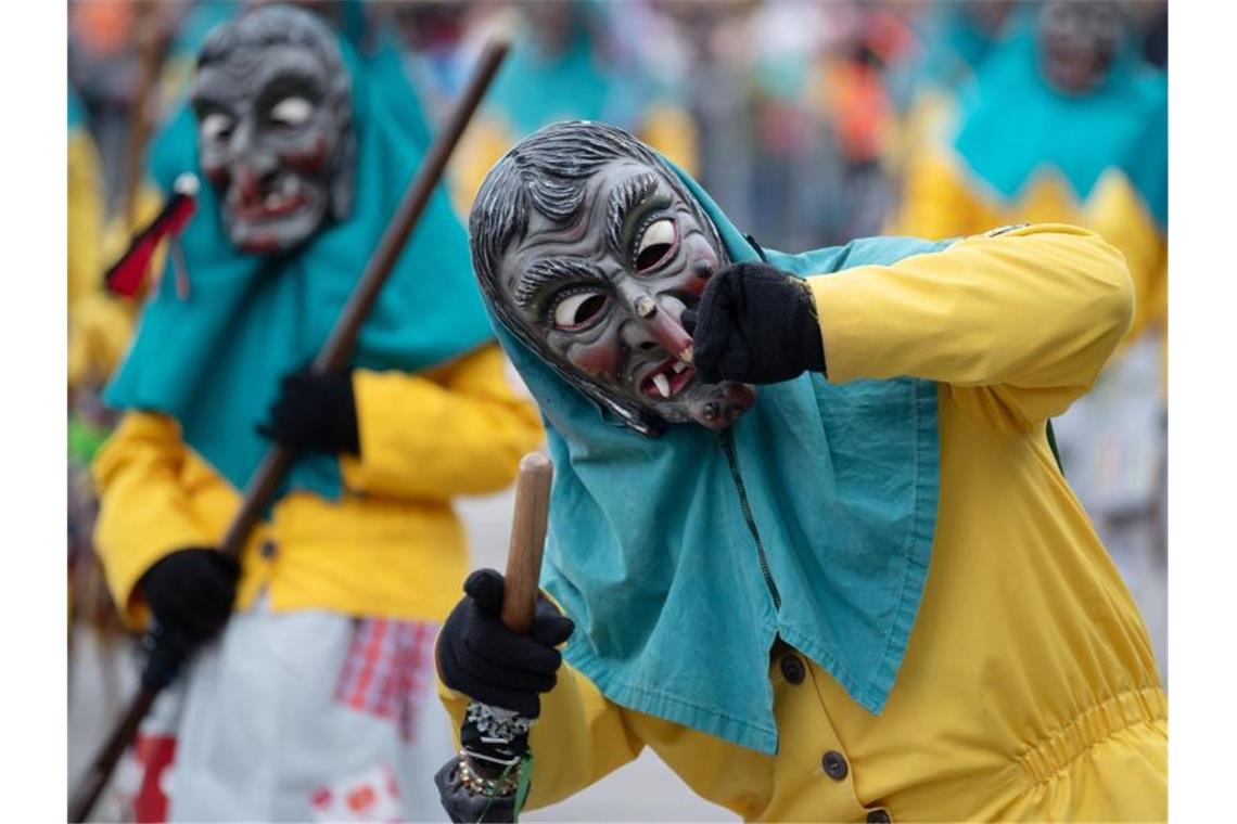 Als "Hexen" verkleidete Teilnehmer nehmen in der Innenstadt am Faschingsumzug teil. Foto: Marijan Murat/dpa