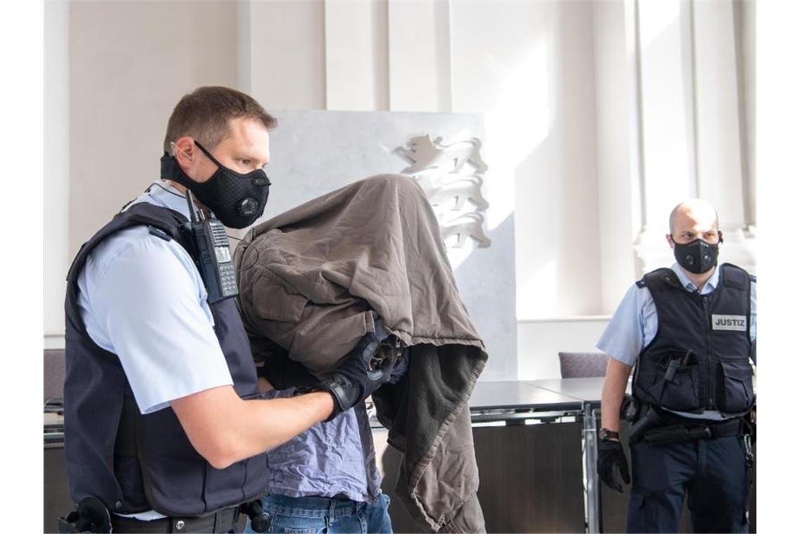 Der Angeklagte wird im Landgericht Ellwangen in den Gerichtssaal geführt. Foto: Sebastian Gollnow/dpa