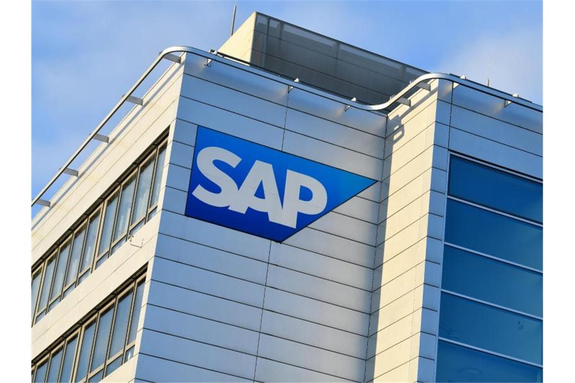 Ein Konzernlogo des Softwarekonzerns SAP ist an einem Gebäude der Unternehmenszentrale angebracht. Foto: Uwe Anspach/dpa/Archiv