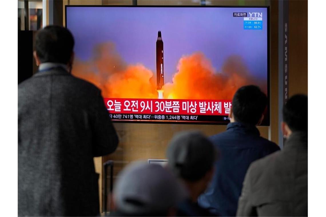 Erst am vergangenen Mittwoch hatte Nordkorea eine Rakete getestet. Menschen verfolgen einen Bericht dazu in einem Bahnhof in Seoul. Foto: Lee Jin-Man/AP/dpa