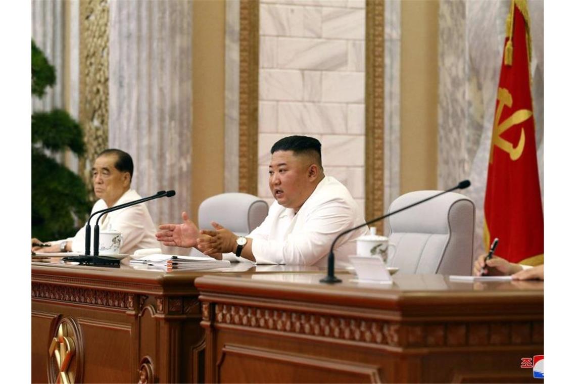 Kim Jong Un während einer Sitzung des Politbüros in Pjöngjang. Foto: -/KCNA/dpa
