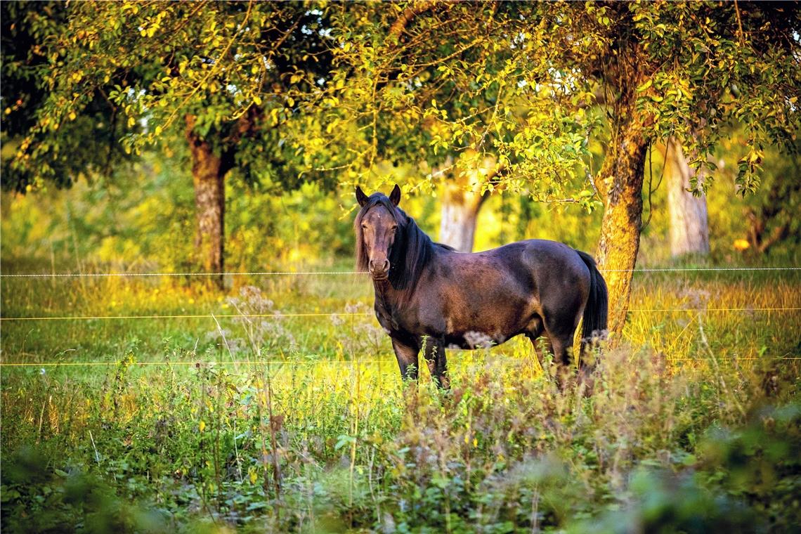 WEISSACH IM TAL. Grün leuchtet der baumbestandene Wiesenhang im Abendlicht. Unten entlang des Brüdenbachs radeln sportliche Menschen ihrem Feierabend entgegen, andere führen ihren Hund noch mal Gassi oder vertreten sich nach einem Bürotag die Beine. Hoch oben am Hang sind neuerdings auch Vierbeiner unterwegs. Drei hochbetagte Shetland-Ponys und ein junges Bosnisches Gebirgspony markieren hier auf der gemeindeeigenen Streuobstfläche den Auftakt zu neuen Wegen: Die landwirtschaftliche Nutzung der insgesamt rund zehn Hektar im Gewann Bruckenhau soll eine ökologische Zielrichtung bekommen. Dafür hat das Planungsbüro Roosplan aus Backnang ein Bewirtschaftungskonzept erarbeitet, auf dessen Grundlage zukünftige Pachtverträge abgeschlossen werden sollen. „Durch eine extensivere Nutzung soll die Artenvielfalt auf den Flächen erhöht werden“, erläutert Biologin Nadja Schäfer das Vorgehen. Ohne Düngung könnte bei eingeschränkter Nutzung im Idealfall aus der derzeitigen Fettwiese – mit immerhin Storchschnabel, Labkraut und Zaunwicke – im Laufe der Jahre dann eine noch blumenreichere Magerwiese mit Margeriten, Salbei und Skabiosen-Flockenblume entstehen. Ausmagern nennt dies der Fachmann. Die landwirtschaftliche Abwertung der Wiese bedeutet somit aus ökologischer Sicht eine Aufwertung. Und diese könnte der Gemeinde – neben einem attraktiven Blickfang – in ein paar Jahren wertvolle Ökopunkte einbringen.