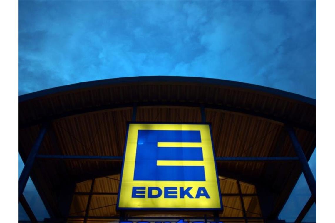 Eine Leuchtreklame weist auf einen Edeka-Markt hin. Foto: Federico Gambarini/dpa/Archivibild