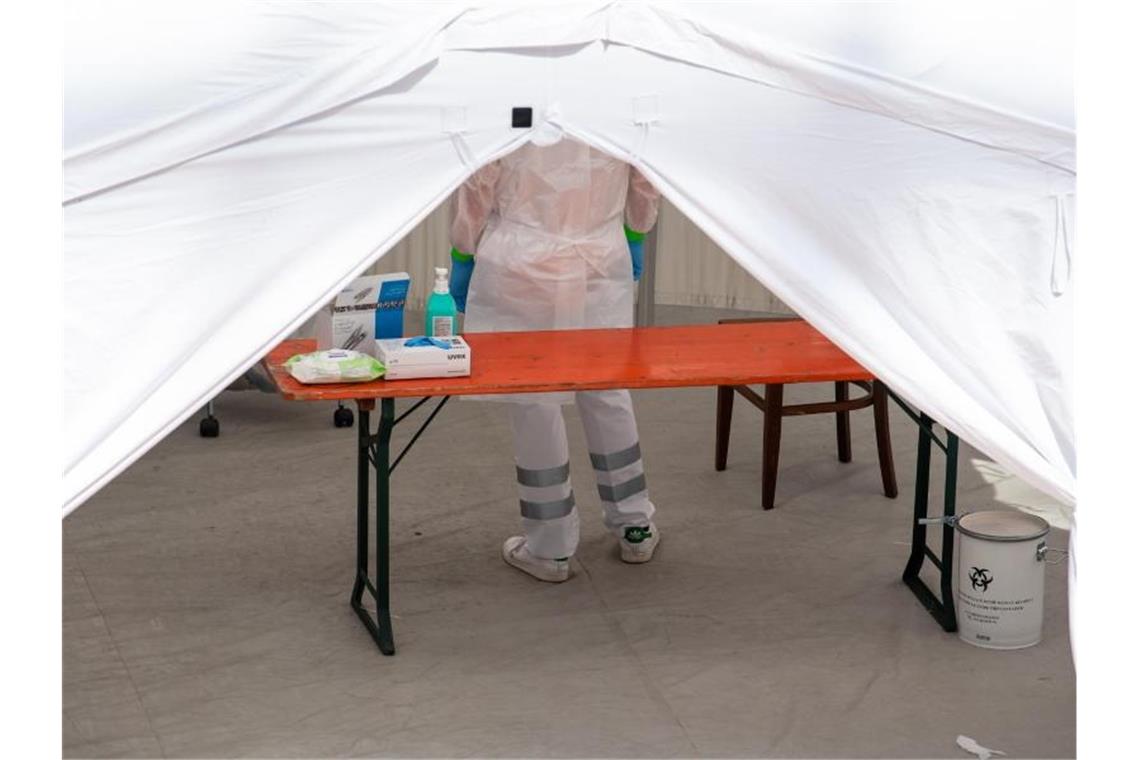 Medizinisches Personal im Zelt eines Corona-Testzentrums. Foto: Sven Hoppe/dpa/Archivbild