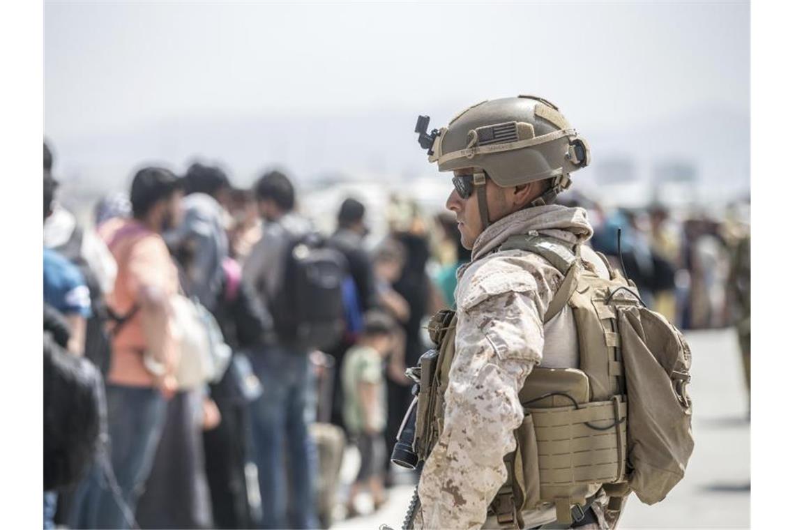 Ein US-Soldat im August während der Evakuierungsaktion am Flughafen von Kabul. Foto: Sgt. Samuel Ruiz/U.S. Marine Corps/AP/dpa