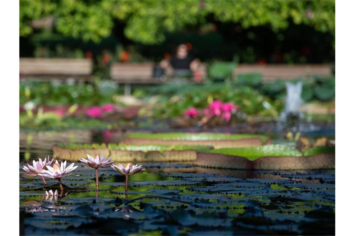 Seerosen blühen in einem Teich des Zoologisch-Botanischen Garten Wilhelma. Foto: Marijan Murat/Archiv