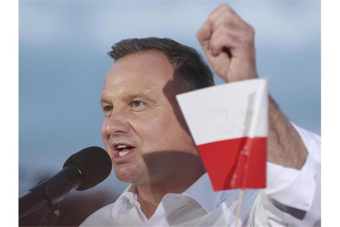 PiS-Präsidentschaftskandidat Andrzej Duda bei einer Wahlkampfveranstaltung im polnischen Lomza. Foto: Czarek Sokolowski/AP/dpa