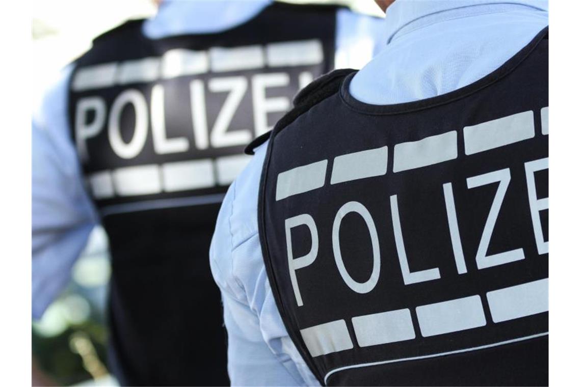 In Polizei-Westen gekleidete Polizisten. Foto: Silas Stein/dpa/Symbolbild