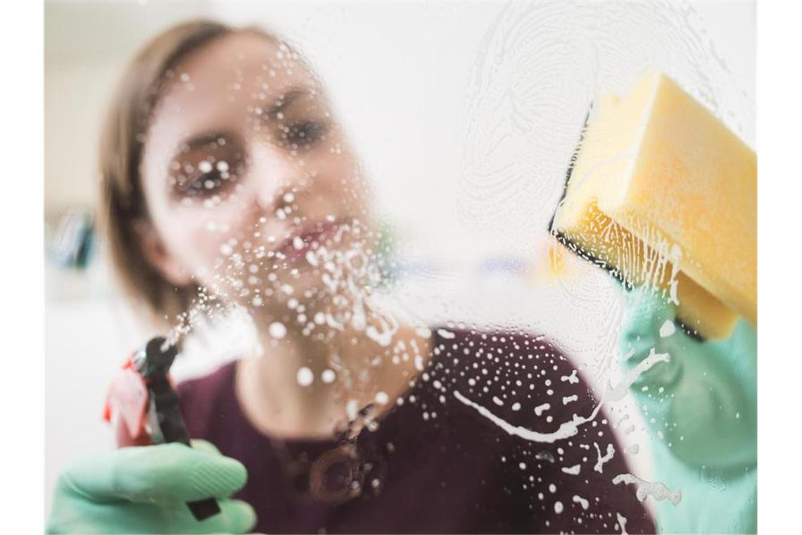 Ein Frau putzt. Ein Putzmittelstudie warnt vor Atemwegsbelastungen durch Schadstoffpartikel beim Putzen. Foto: Franziska Gabbert/dpa-Zentralbild/dpa