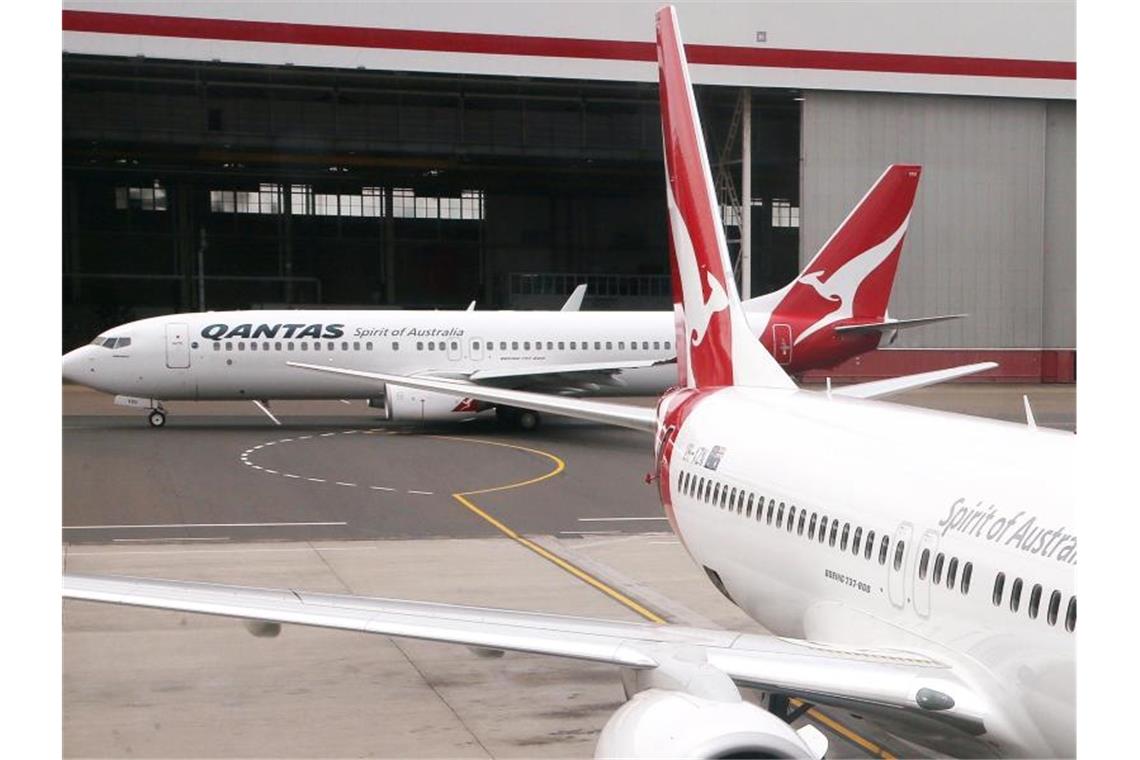 Zwei 737-Jets der australischen Fluggesellschaft Qantas rangieren auf dem Sydney Airport. Foto: Rick Rycroft/AP/dpa