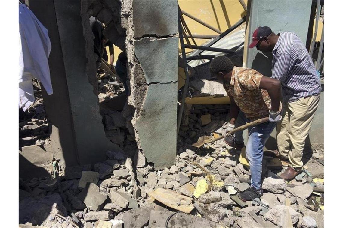 Das Archivbild aus dem Oktober 2021 zeigt Trümmer nach einem Angriff der äthiopischen Luftwaffe in der Region Tigray. Foto: -/AP/dpa