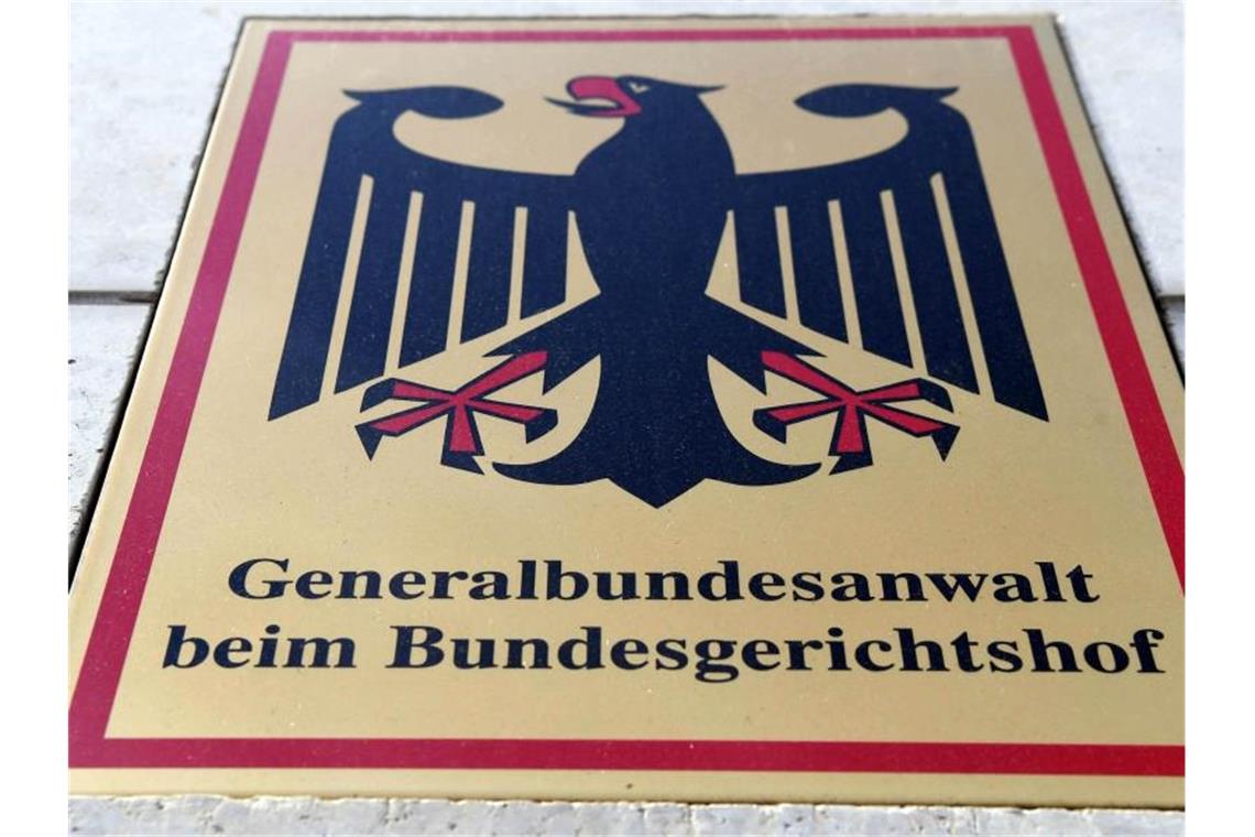 Ein Hinweisschild mit Bundesadler und dem Schriftzug "Generalbundesanwalt beim Bundesgerichtshof" in Karlsruhe. Foto: Uli Deck/dpa