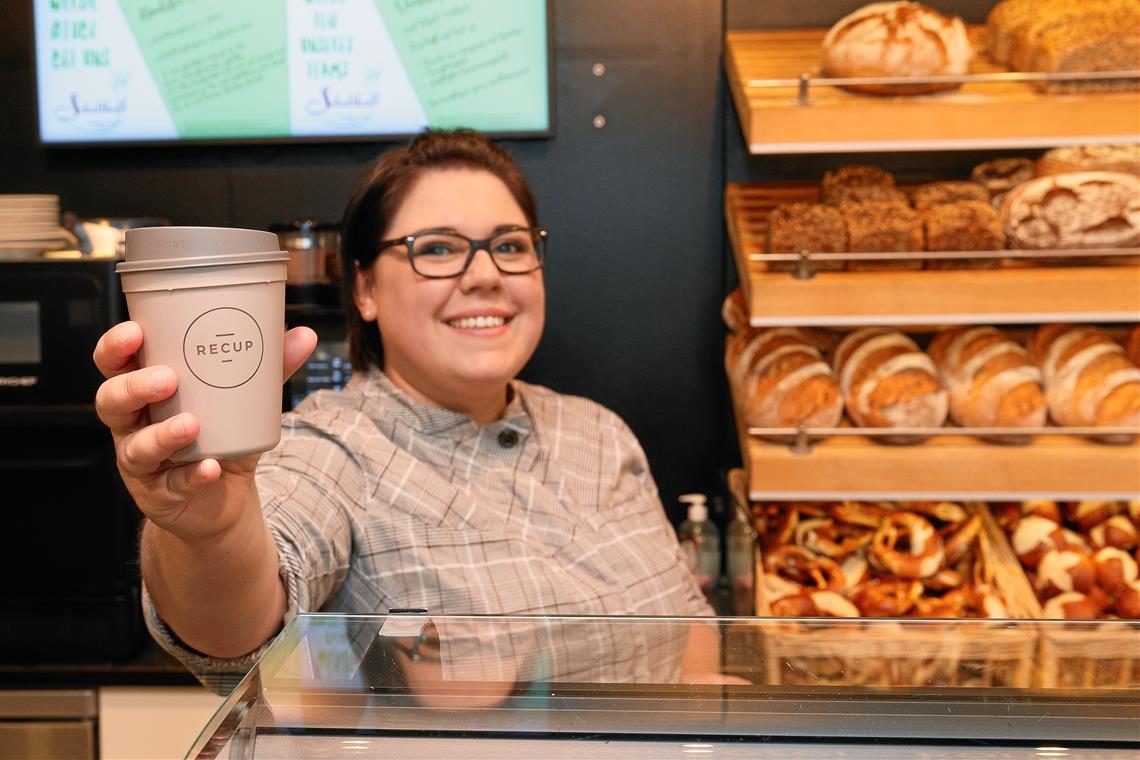 Bei Julia Voß in der Murrhardter Bäckerei Schultheiß ist der Recup-Mehrwegbecher seit etwa einem Jahr im Einsatz.Foto: Jörg Fiedler