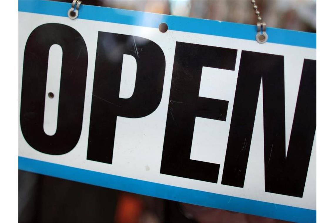 Ein Ladeninhaber dreht an seinem Geschäft das Schild auf „open“ (geöffnet). Foto: Oliver Berg/dpa/Symbolbild