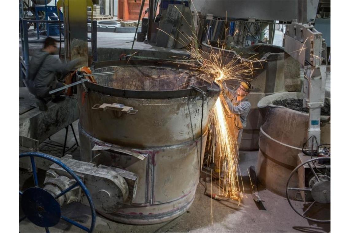 Mitarbeiter in einer Gießerei. Die Bundesregierung arbeitet bei Corona-Hilfen an Nachbesserungen für mittelständische Unternehmen, um eine Pleitewelle zu verhindern. Foto: Jens Büttner/dpa-Zentralbild/dpa