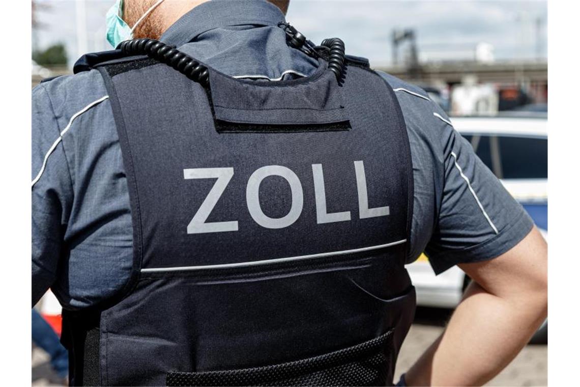 Ein Beamter trägt während seines Dienstes eine Schutzweste mit der Rückenaufschrift "Zoll". Foto: Markus Scholz/dpa/Symbolbild