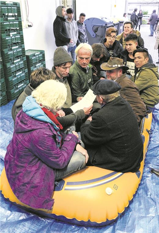 Die Besucher der Roadshow, die im überfüllten Schlauchboot Platz nehmen, überkommt ein beklemmendes Gefühl und eine Ahnung der Hilflosigkeit, die alle Bootsinsassen empfinden. Foto: E. Layher