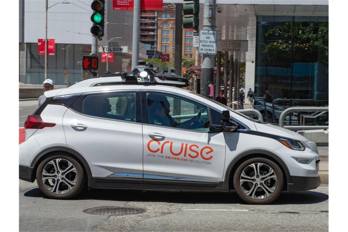 Ein selbstfahrendes Auto der General-Motors-Tochterfirma Cruise auf der Straße. Foto: Andrej Sokolow/dpa