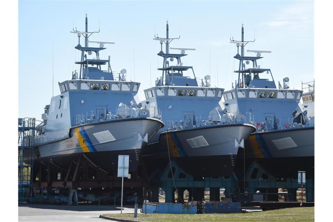 Zum Export bestimmte Patrouillenboote in einer Werft. Foto: Stefan Sauer/dpa/Archiv