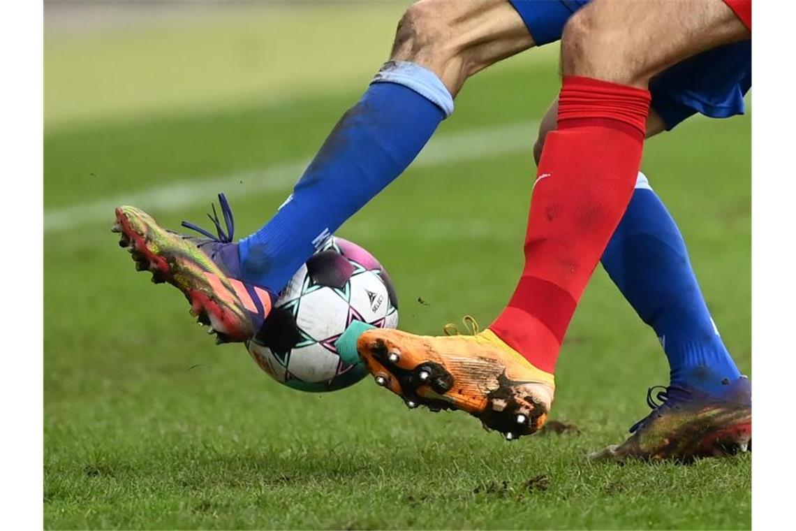 Zwei Fußballspieler kämpfen um den Ball. Foto: Uli Deck/dpa/Symbolbild