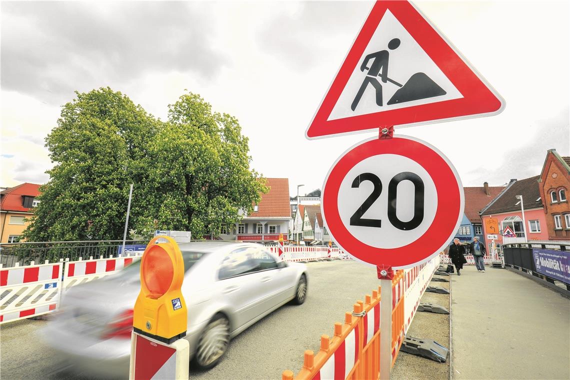 Momentan ist die Geschwindigkeitsbeschränkung auf der Aspacher Brücke der Baustelle geschuldet, doch die Stadtverwaltung möchte die zulässige Höchstgeschwindigkeit in diesem Bereich dauerhaft reduzieren. Foto: A. Becher