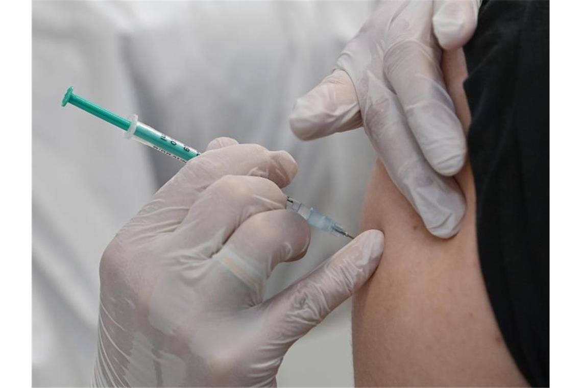 Ein Mitarbeiter eines Impfzentrums impft einen Mann gegen Corona. Foto: Patrick Pleul/dpa-Zentralbild/dpa/Symbolbild