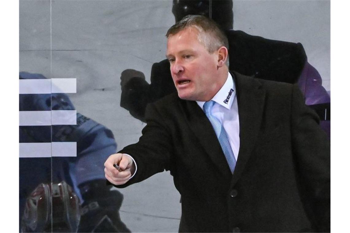 Trainer Niklas Sundblad von Schwenningen gibt seiner Mannschaft Anweisungen. Foto: Armin Weigel/dpa/Archiv