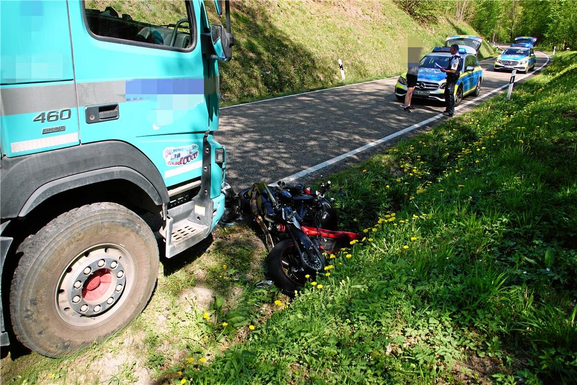 SPIEGELBERG (pol). Auf der Landesstraße L1117 zwischen Nassach und Siebersbach hat sich am Nachmittag ein schwerer Motorradunfall ereignet. Wie die Polizei jetzt mitteilt, fuhr um 14:30 Uhr ein 49 -jähriger Motorradlenker von Siebersbach in Richtung Nassach. In einer leichten Rechtskurve wollte er einen vor ihm fahrenden 55-jährigen Porsche-Fahrer überholen. Während des Überholvorgangs bemerkte er einen entgegenkommenden Lkw und wollte wieder nach rechts einscheren. Dabei kollidierte er seitlich mit dem Porsche und wurde dabei in den Gegenverkehr abgewiesen. In der weiteren Folge kollidierte er mit dem entgegenkommenden Volvo-Lkw eines 32 -jährigen Mannes. Durch den Aufprall wurde der Motorradfahrer schwer verletzt. Er musste mit einem Rettungshubschrauber in eine Spezialklinik geflogen werden. Der Sachschaden beträgt mehrere tausend Euro. Die L1117 war für die Dauer der Unfallaufnahme voll gesperrt.