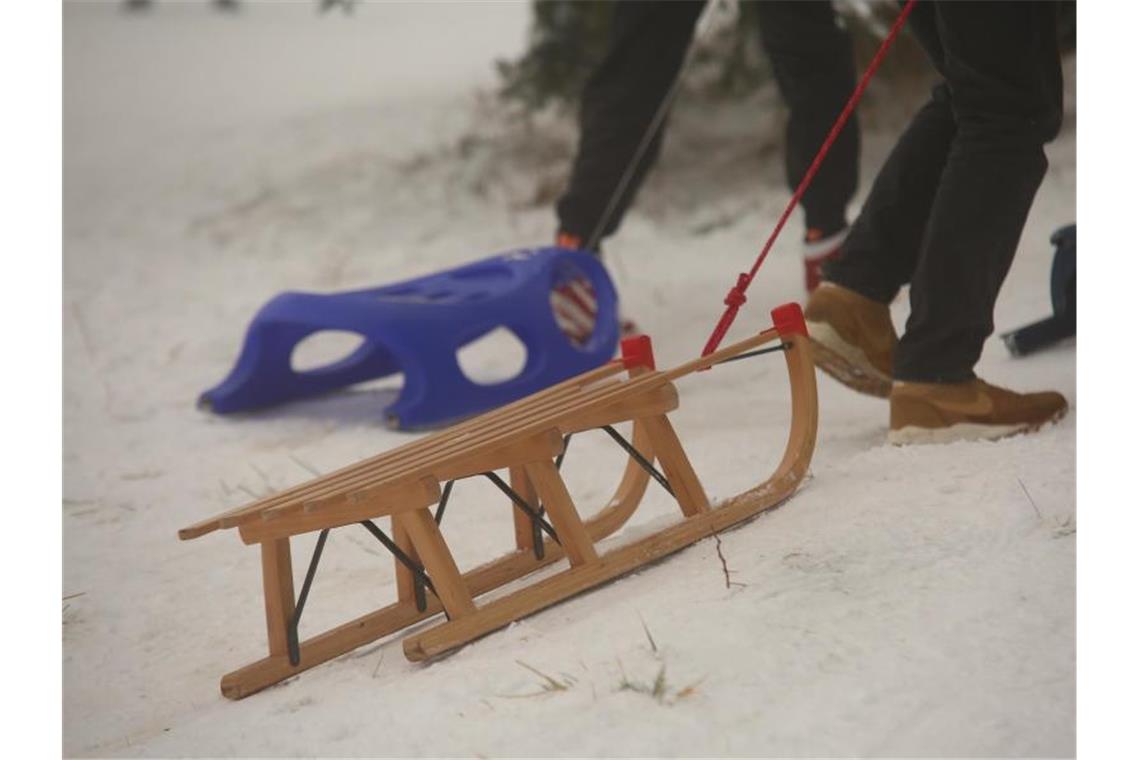 Ein Mann zieht einen Schlitten den Berg hinauf. Foto: Matthias Bein/dpa-Zentralbild/dpa/Symbolbild