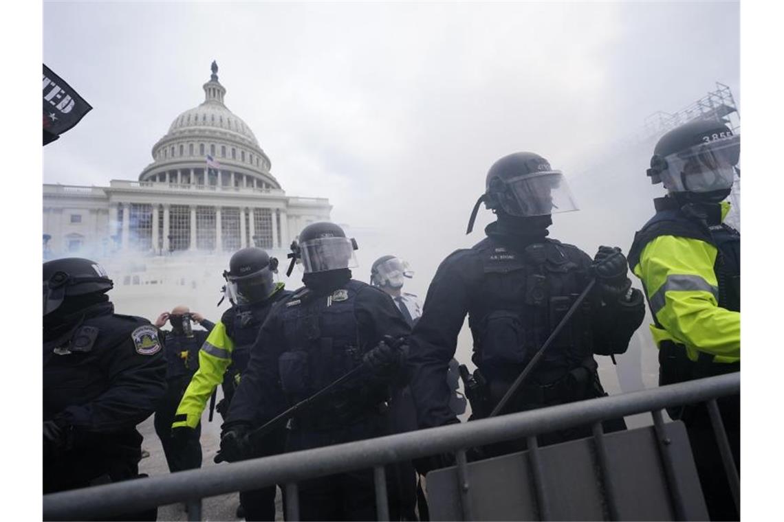 Die Polizei versucht, das Kapitol vor Eindringlingen zu schützen. Foto: Julio Cortez/AP/dpa
